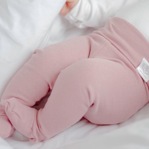 Cotton Rib with fold over rib waistband. Footed leggings